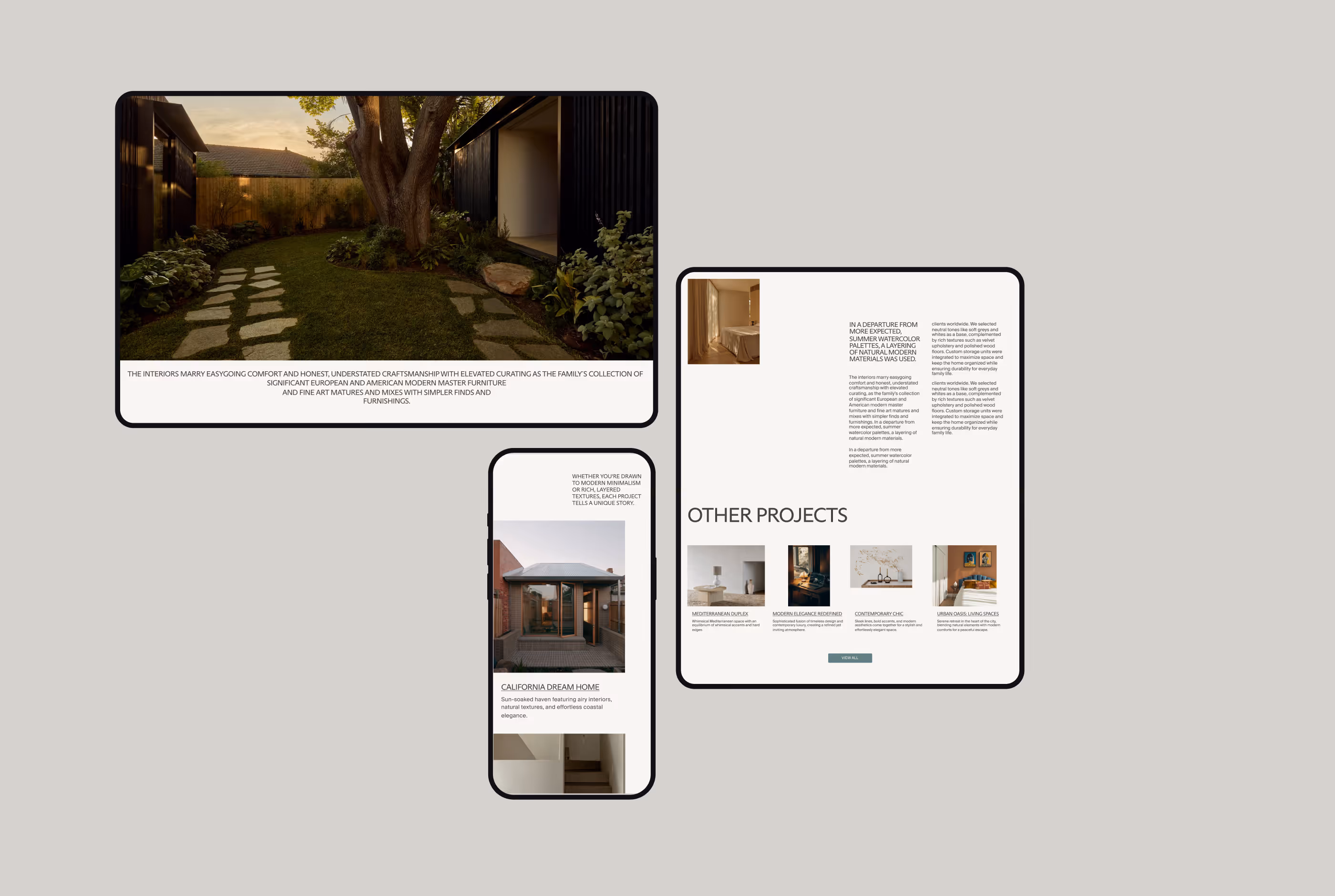 The result is a cohesive digital experience that mirrors the principles of interior design itself: balance, harmony, and attention to detail. The combination of structured layouts, refined typography, and carefully curated imagery creates a premium, editorial feel that elevates the brand and enhances user engagement.