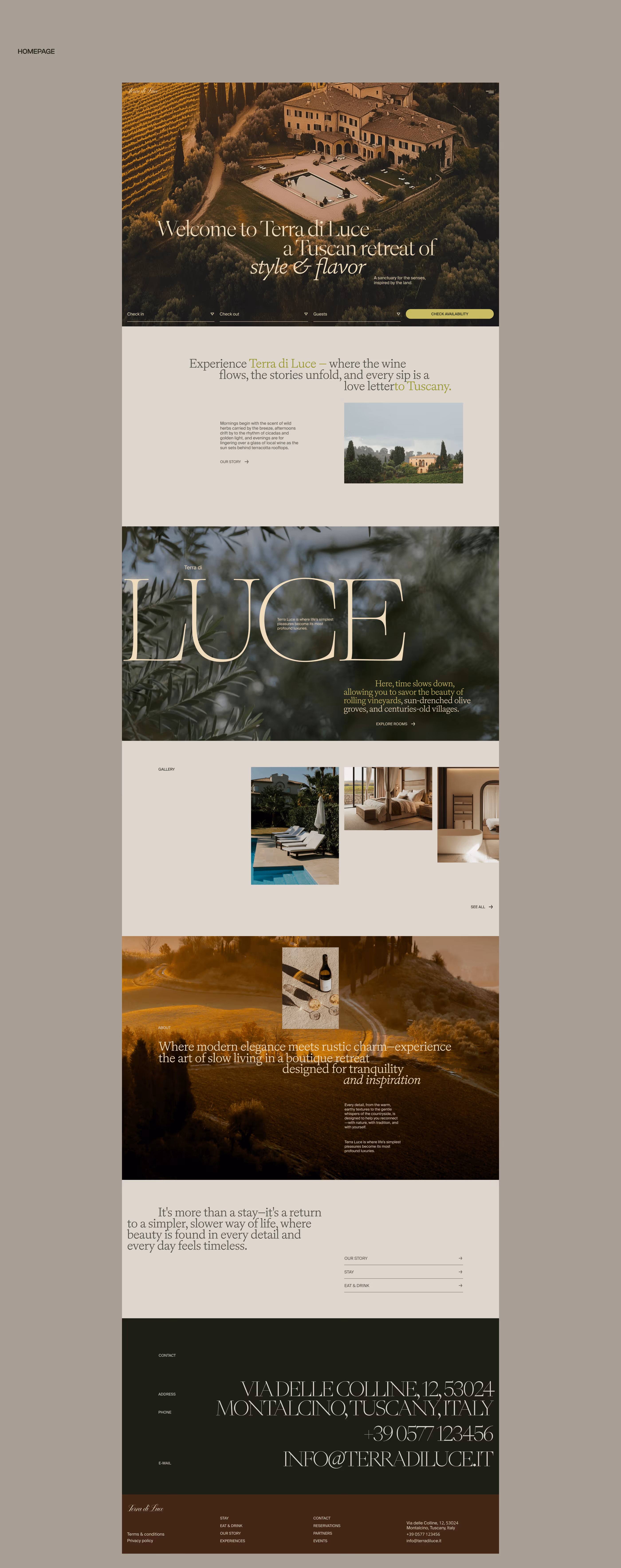Website design for Terra di Luce – a boutique hotel that blends rustic elegance with modern luxury